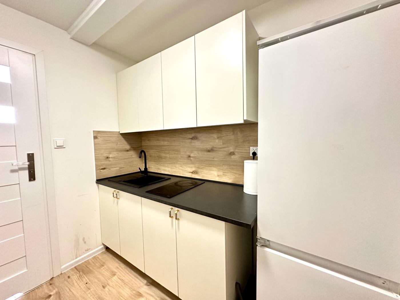 Studio. The studio features a washing machine, a dining area, as well as a private bathroom boasting a shower. Guests can make meals in the kitchenette that features a stovetop, a refrigerator, kitchenware and an electric kettle. The studio provides a wardrobe, parquet floors and heating. The unit has 2 beds. Studio - 4 osobowy. Powierzchnia pokoju ok.: 28 mkw.
