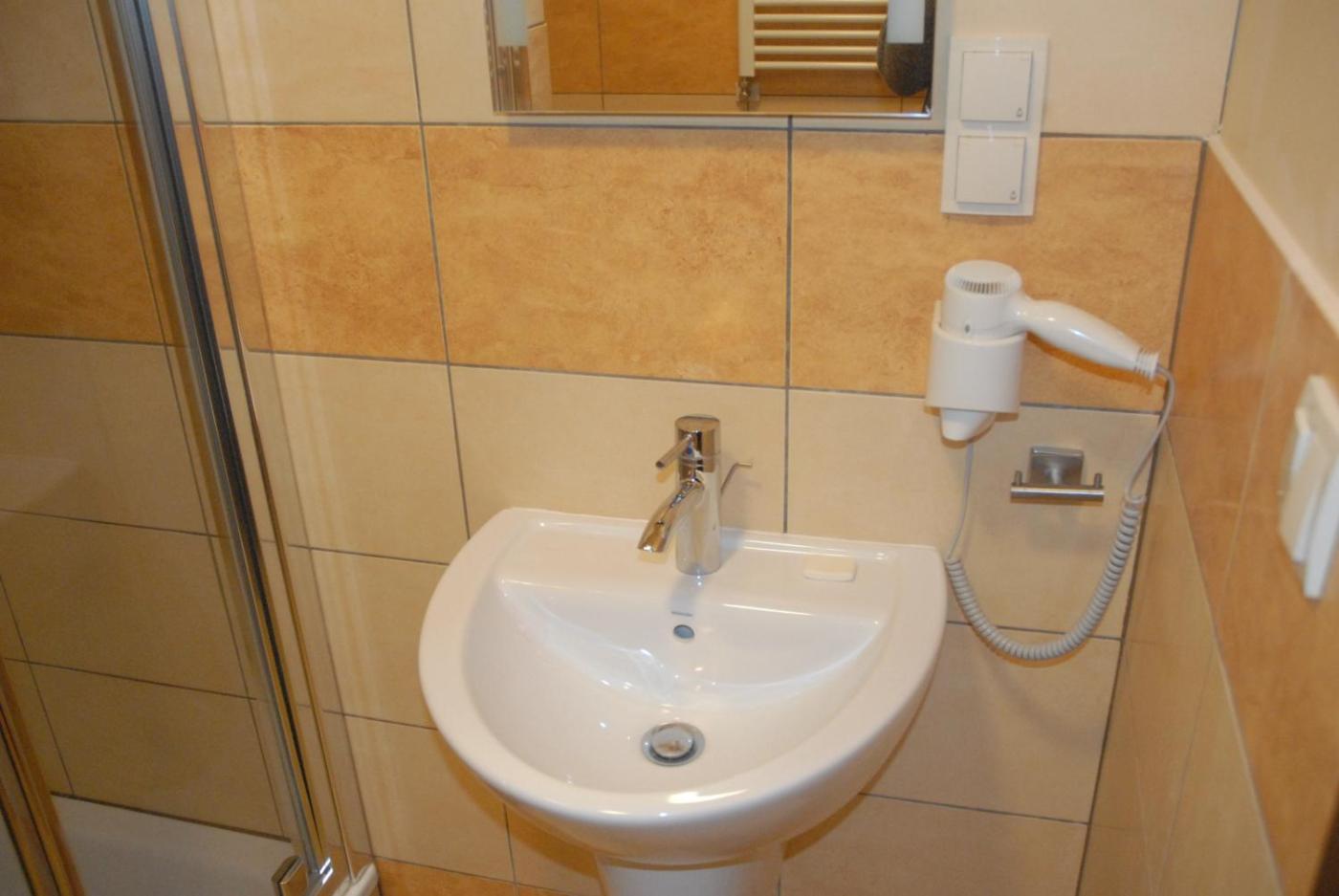Wszystkie pokoje w hotelu Ślęża dysponują łazienką z prysznicem i kapciami.